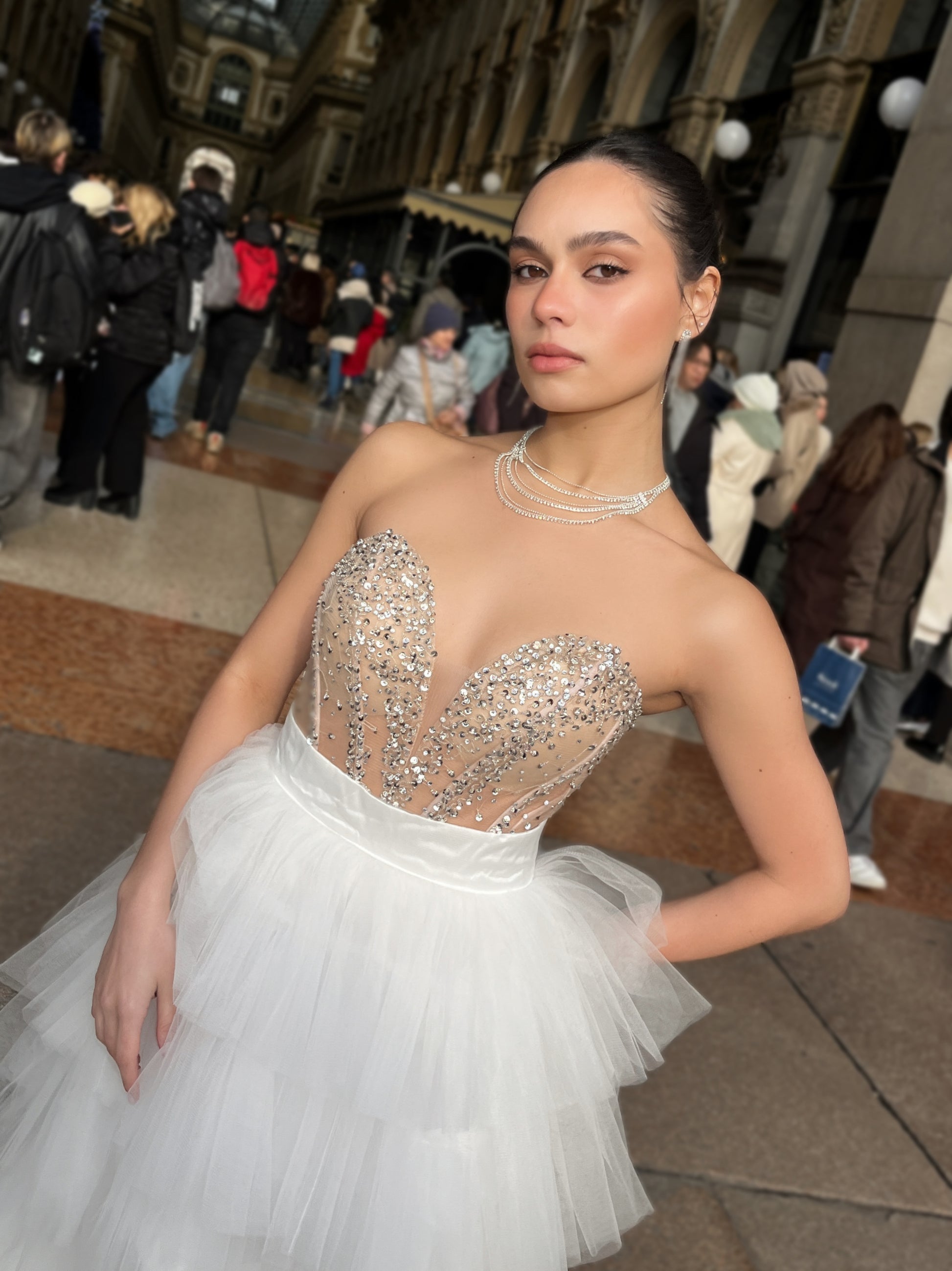 ABITO AMPIO IN TULLE CORTO AVANTI ,